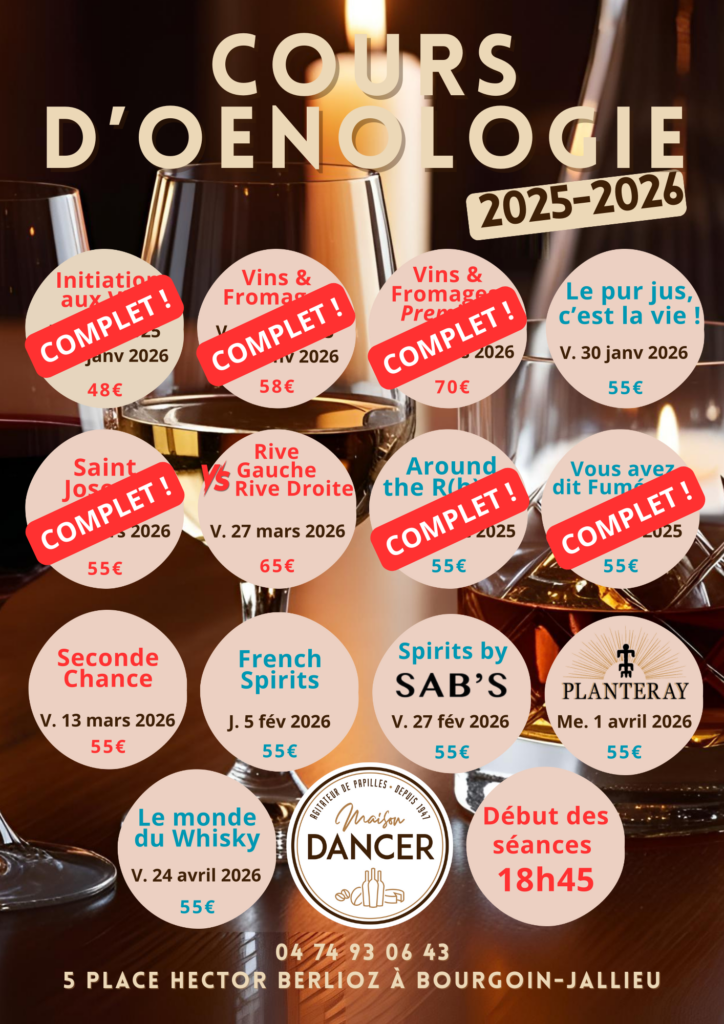 Afin de partager notre passion pour les vins et vous aider à mieux les connaître, nous proposons régulièrement des cours d’œnologie à Bourgoin-Jallieu. Convivialité et bonne humeur garanties !